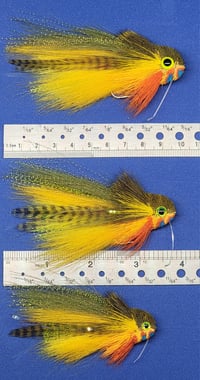 Whitlock's ultimate Sunfish pattern. If you hunt for big smallmouth, this needs to be in your arsenal. The biggest Smallmouth eat Sunfish. This fly helps you match that hatch for big fish. Slim profile with big eyes makes this fly the perfect target. Excellent fly for Smallmouth, Largemouth, Musky and Snakehead. Weedless. Deadly. Incredibly lifelike movement. Durable to last through multiple attacks. 4" long making it the perfect size and profile to match this special hatch.